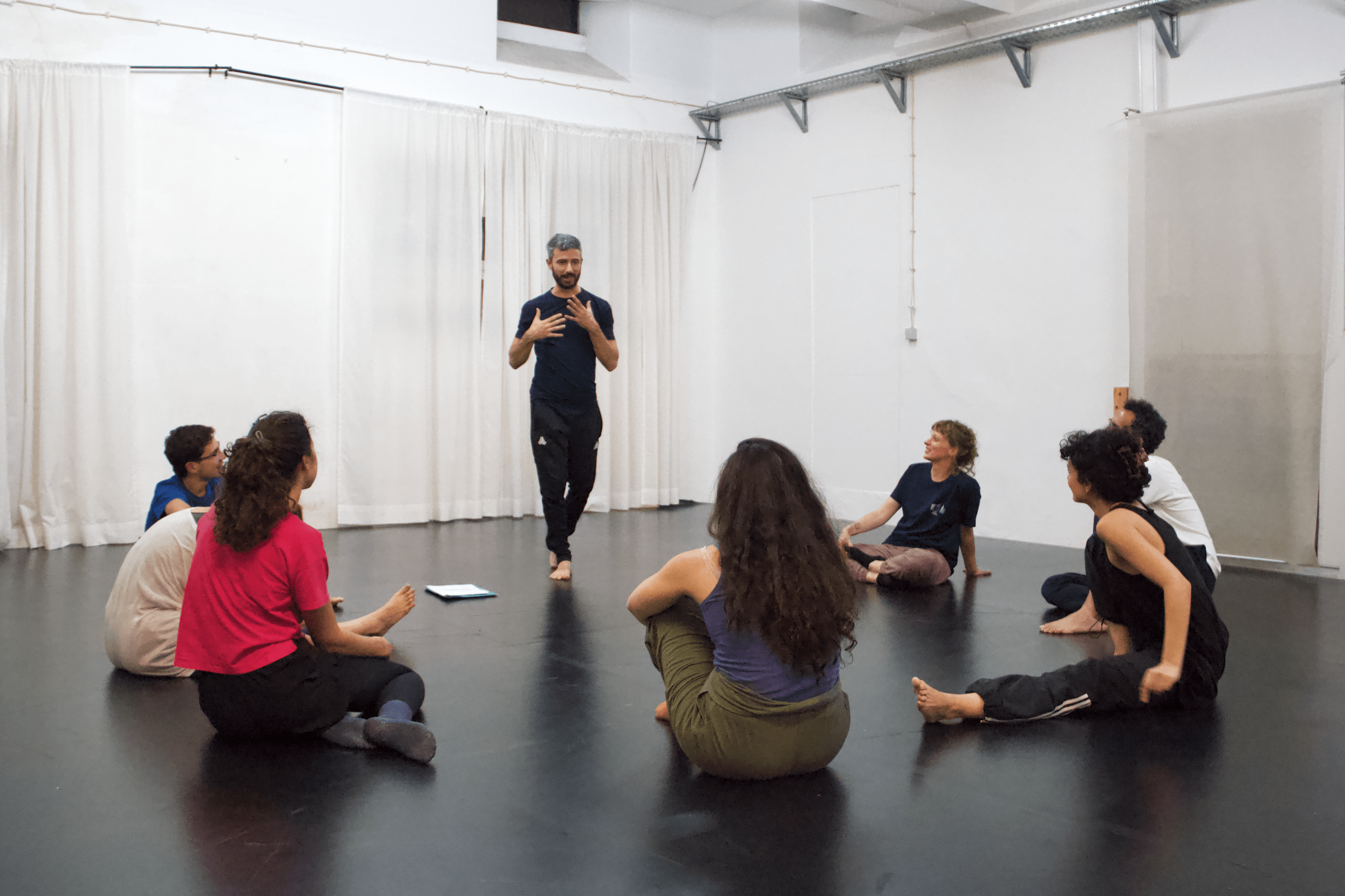 Através de práticas de teatro e dança, improvisações e jogos performativos, investigamos a tensão e o diálogo entre corpo e linguagem: como o movimento dá corpo às palavras e como as palavras, por sua vez, podem reconfigurar o movimento.