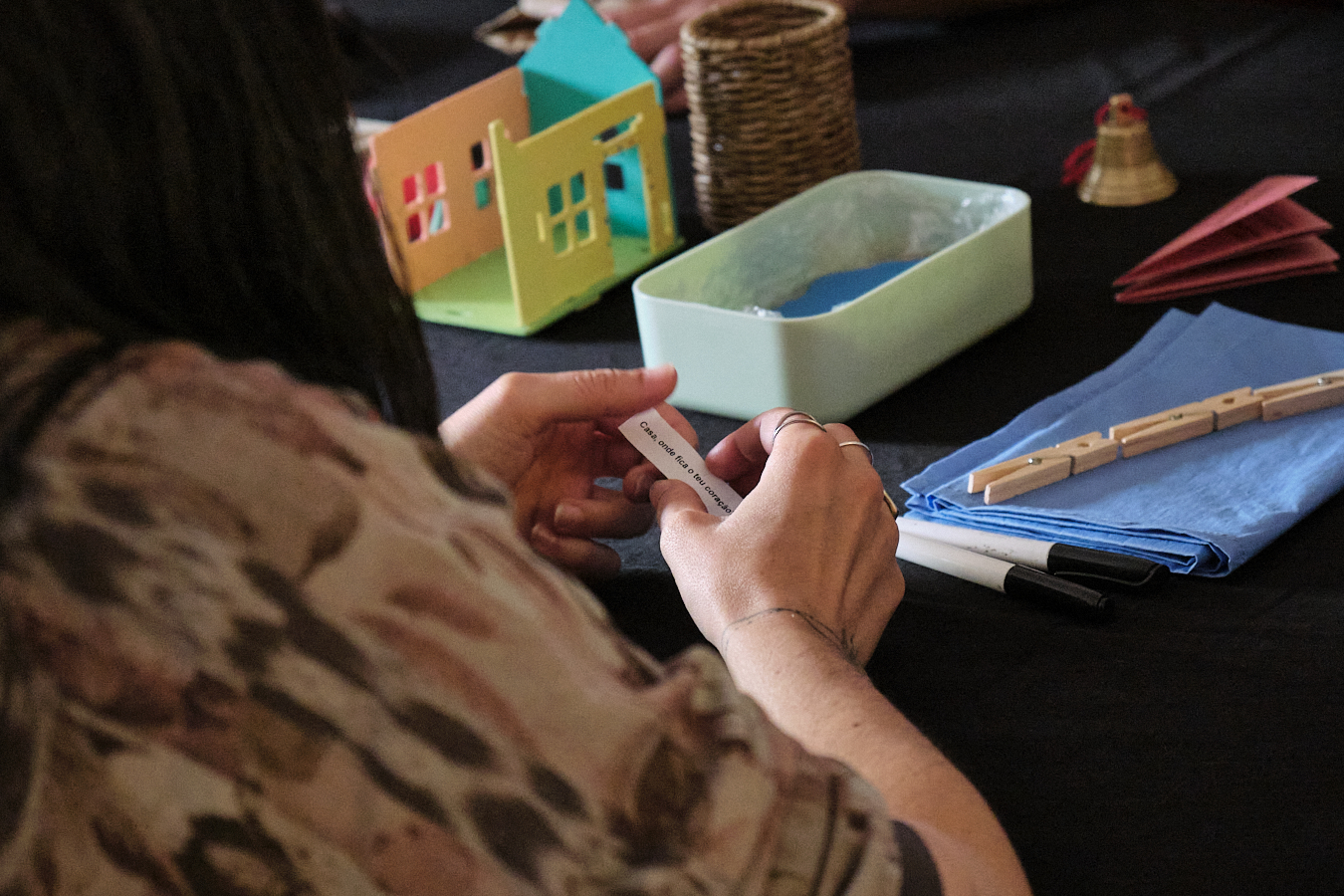 “When Angels Speak of Love” is a ritual performance that takes place inside homes and with those who live there. Inspired by Ghostbusters, a team of four performers visits families and emotional constellations to open up a space for listening and collective imagination, summoning the invisible presences that permeate intimacy: grief, legacies, memories, dreams, and different ways of loving.Each session transforms the home into a ritual territory, made up of shared stories, games, oracular gestures, words of struggle, emotional offerings, silent dances and everyday objects that take on new meanings. In the encounter between hosts and visitors, between care and contradiction, between laughter and commotion, a question arises: what if intimacy could be a safe place?